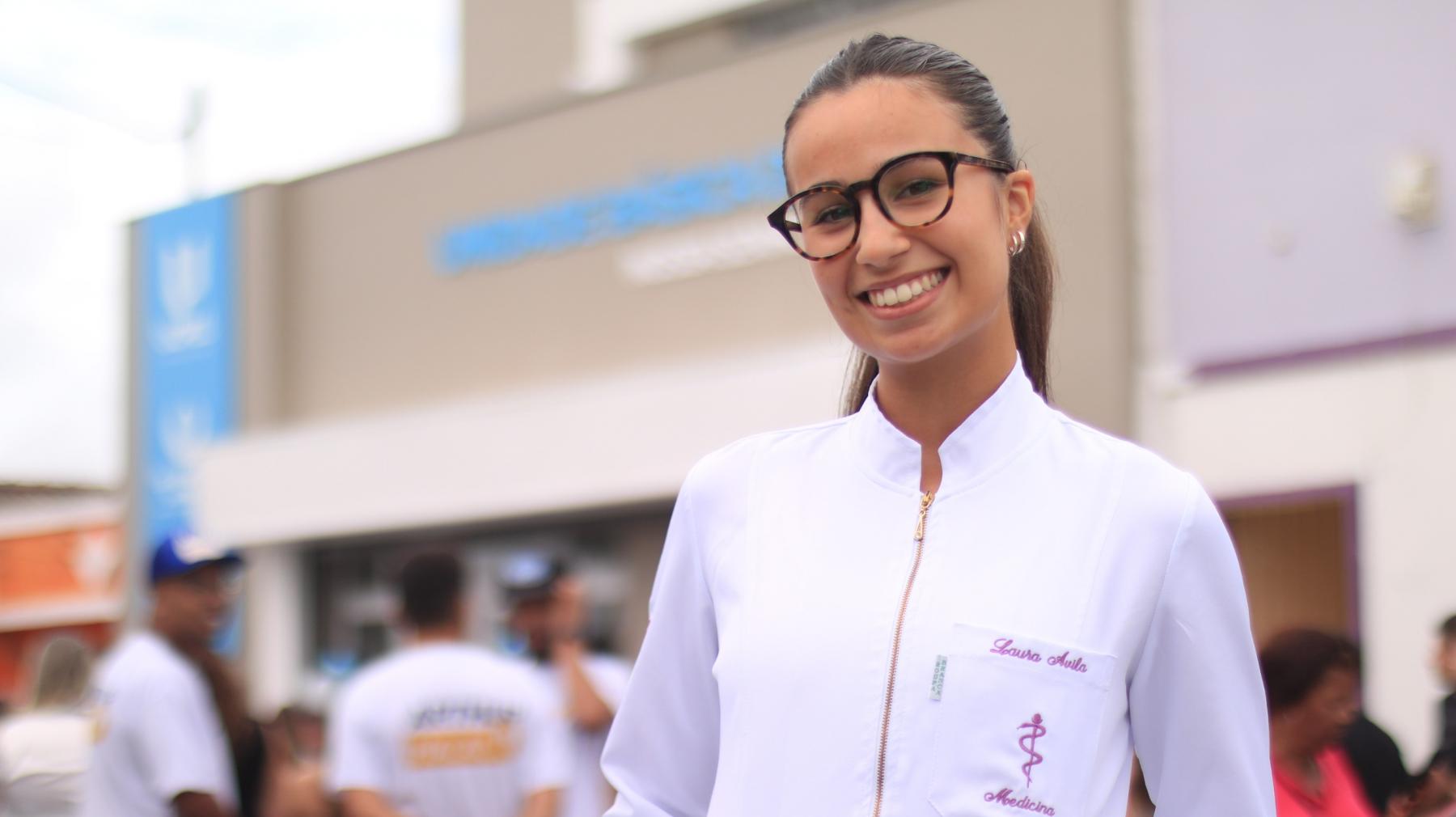 A acadêmica de Medicina Laura Almeida na UBS Fátima, fortalecendo o elo entre aprendizado e cuidado à comunidade. Foto: Leandro Lopes